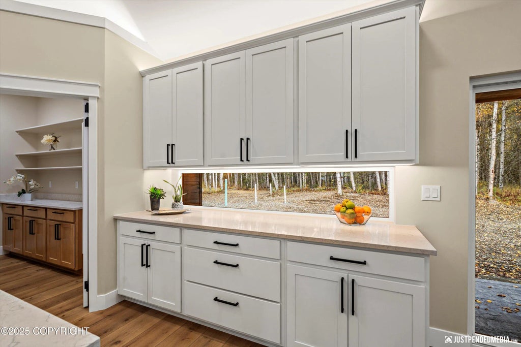 QUALIFIES FOR AHFC $10K NEW HOME CONSTRUCTION REBATE! Discover this amazing ranch-style barndominium located in the desirable Valley Ridge subdivision. Featuring a spacious 1,645 sqft garage with soaring 16-ft ceilings, this property is perfect for both living and recreation. The eat-in kitchen boasts a butler's pantry & a striking 20'' high by 8 ft long backsplash window that effortlessly MORE Buyer to verify funds and apply for rebate