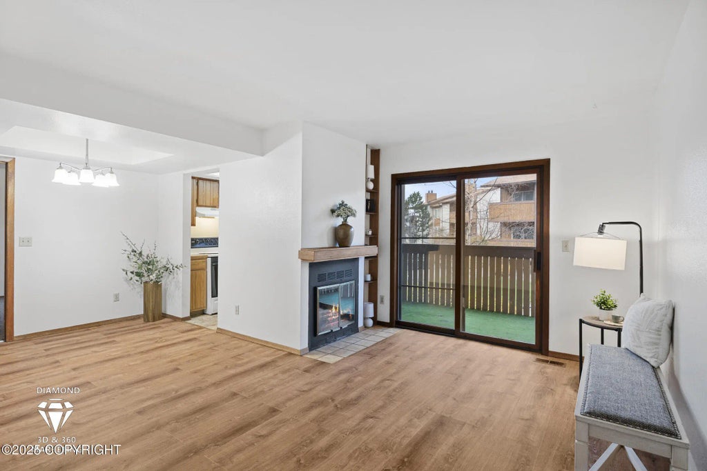 Updated and well-maintained condo in the desirable Foxwood community. This 2-bedroom, 2-bath home features a bright and functional layout with newer flooring, fresh paint, and a wood-burning fireplace as the focal point of the living area. A private covered balcony surrounded by mature trees offers a peaceful outdoor setting, while large windows provide abundant natural light. The kitchen includes generous cabinet space and an efficient layout connected to the dining area. Both bedrooms are well-sized with ample storage. A heated garage on the lower level adds convenience during the winter months. HOA covers exterior maintenance, water, sewer, and snow removal. Convenient South Anchorage location close to parks, trails, shopping, and dining.