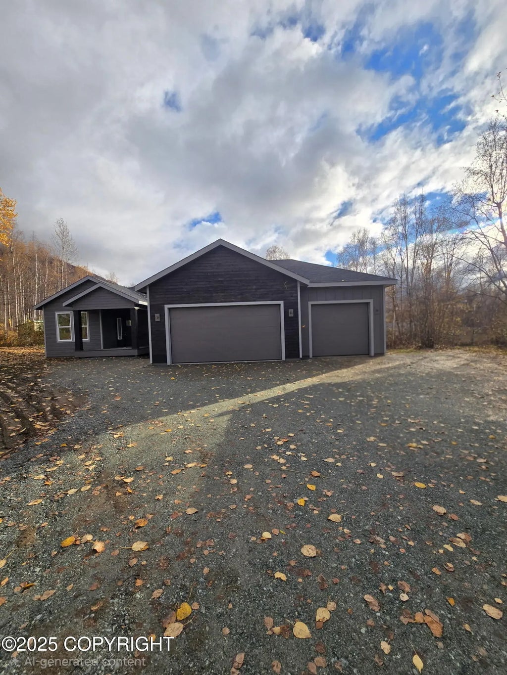 Welcome to another masterfully designed residence by Elegant Homes, where high-end craftsmanship meets everyday comfort. This beautifully built ranch-style home offers 1,772 sq ft of open-concept living with 3 bedrooms, a versatile office or 4th bedroom, and a massive 860 sq ft, 3-car garage—perfect for storing all your Alaskan toys. Inside, you'll be greeted by with an open concept living space with a fireplace and built in shelving! The ceiling has gorgeous recessed beams, while the kitchen boasts quartz countertops, a large center island, and soft close cabinets. Retreat to the private primary suite, complete with dual vanities, a tile-surround shower, and an expansive walk-in closet with custom built-ins. Secondary bedrooms are generously sized with ample closet space and share a well-appointed full bath. The office/flex room with closet offers the ideal space for working from home, guest stays, or a home gym. As a bonus the garage is already pre-wired for your electric car as well! Located in a peaceful setting with convenient access to local amenities, this home checks every box for stylish and functional Alaska living.